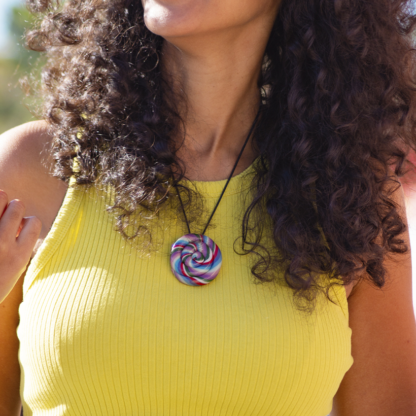 El Twist, tanto en dije como en anillo, nace de esa fascinación por los dulces clásicos, las paletas en espiral, el juego del color y la alegría simple.
