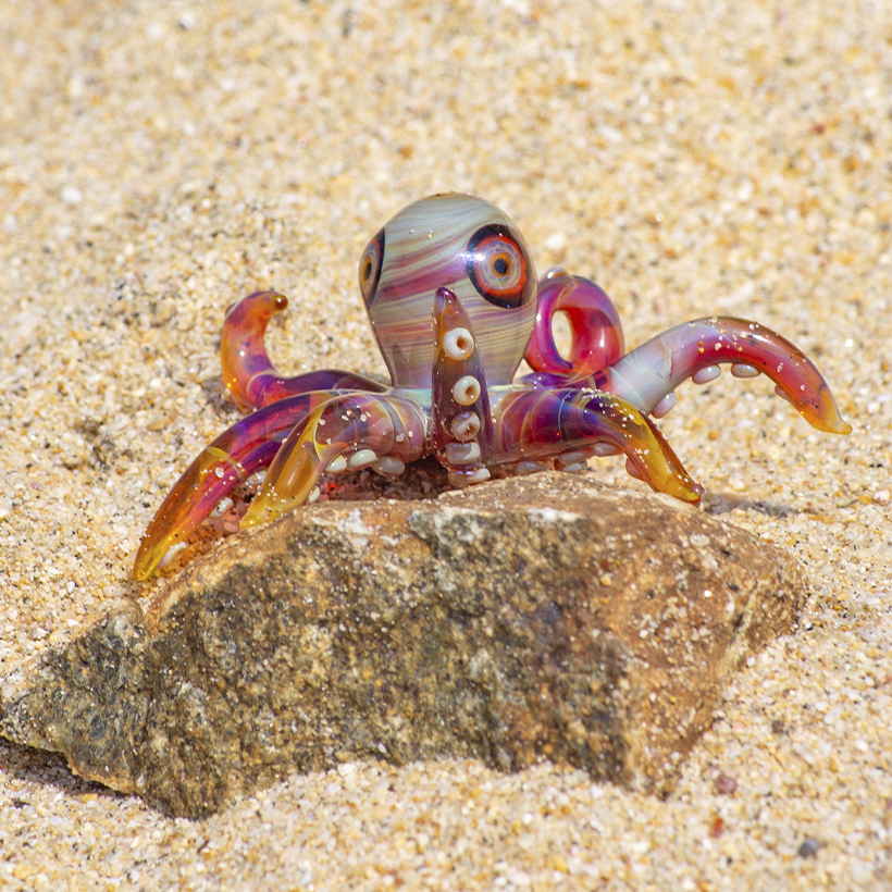 Así nacen estos pulpos de vidrio: pequeños guardianes del océano, creados entre fuego y arena. 🌊
